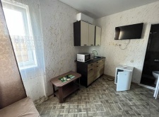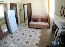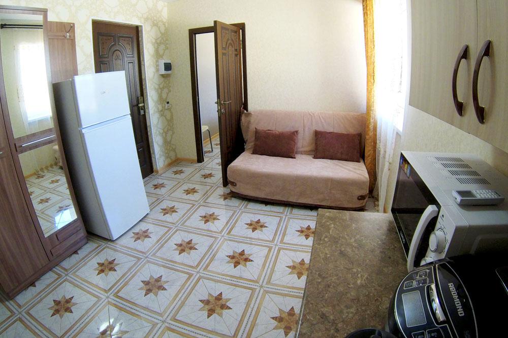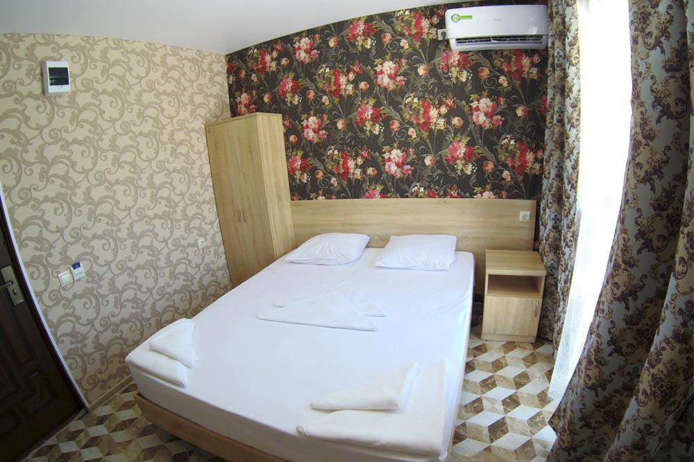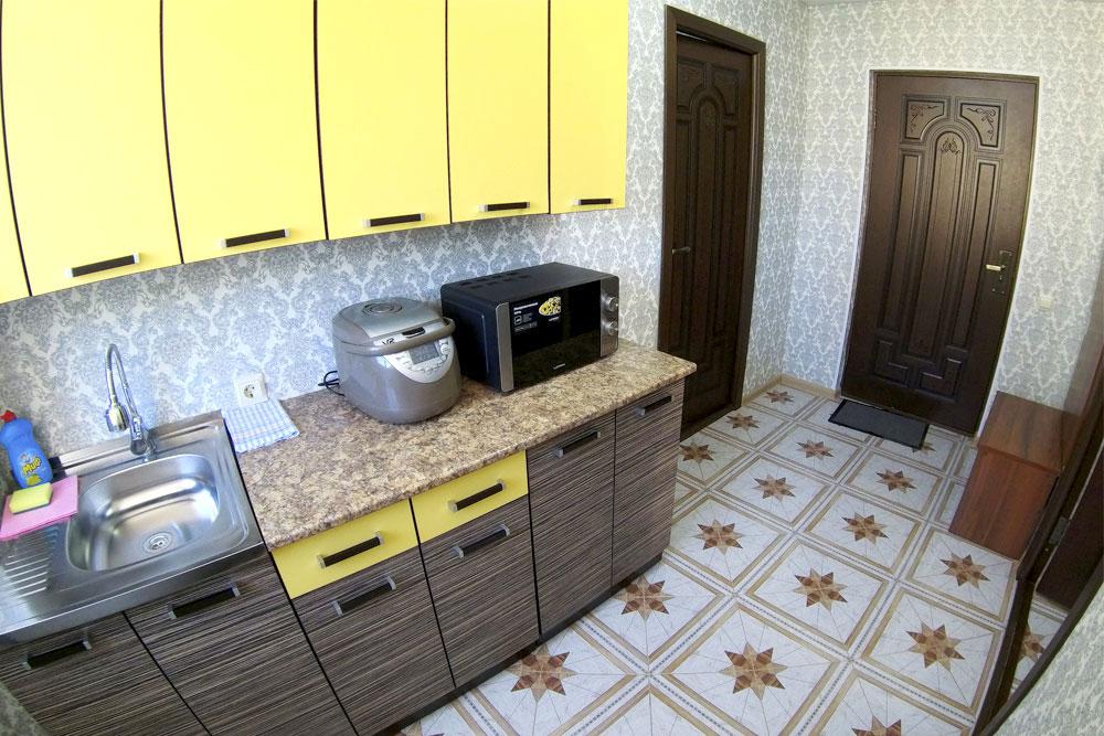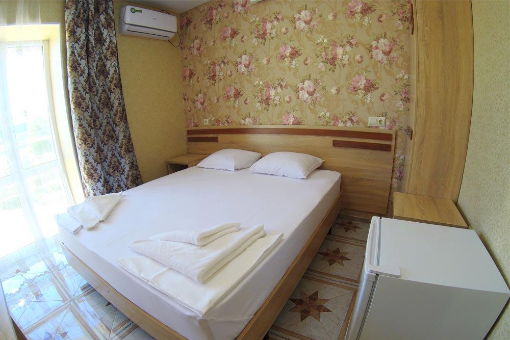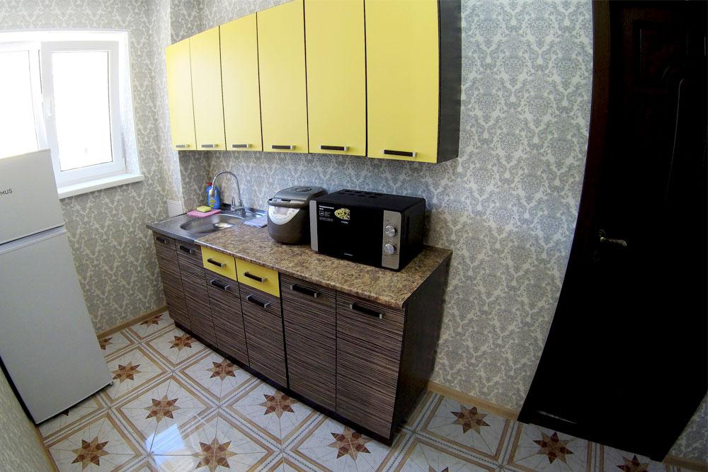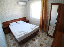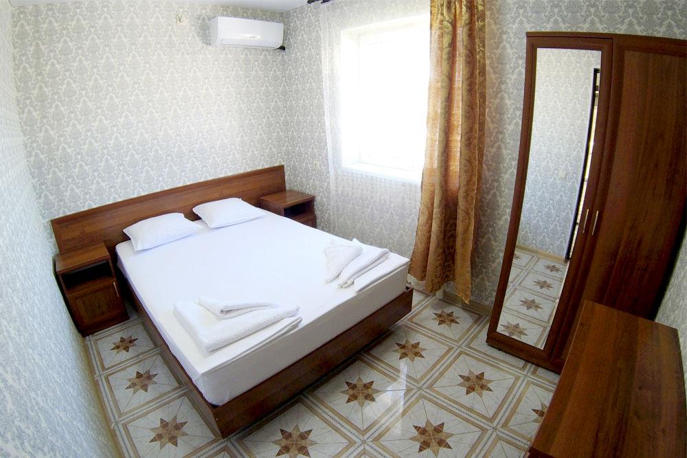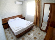 комфортабельные апартаменты общей площадью 50 кв.м., состоящие из двух спален и кухни. Идеальный вариант для отдыха небольшой компании или семьи с несколькими детьми. Одна из спален оборудована двуспальной и односпальной кроватями, прикроватными тумбочками, гардеробом, зеркалом, туалетным столиком. Имеется выход на балкон. Вторая - двуспальной кроватью, прикроватными тумбочками, шкафом для одежды, столиком. Обе комнаты оборудованы кондиционерами и жк-телевизорами. В кухне имеется двухкамерный холодильник, небольшой кухонный гарнитур с навесными шкафчиками, ящиками под общей рабочей поверхностью. Кухонное оборудование: СВЧ-печь, мультиварка, мойка, эл. чайник, посуда. Санузел с душевой кабиной, мойдодыром, туалетом.