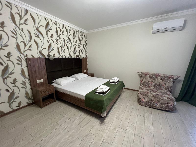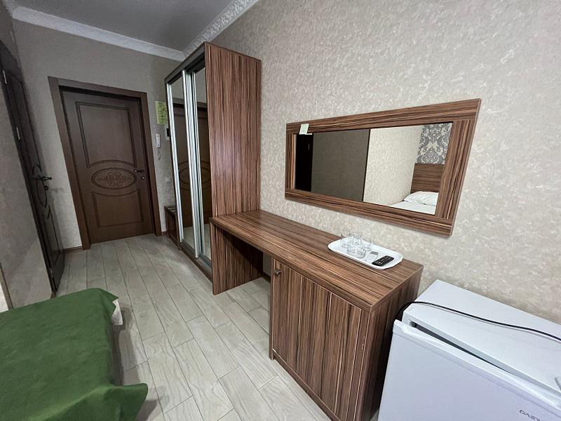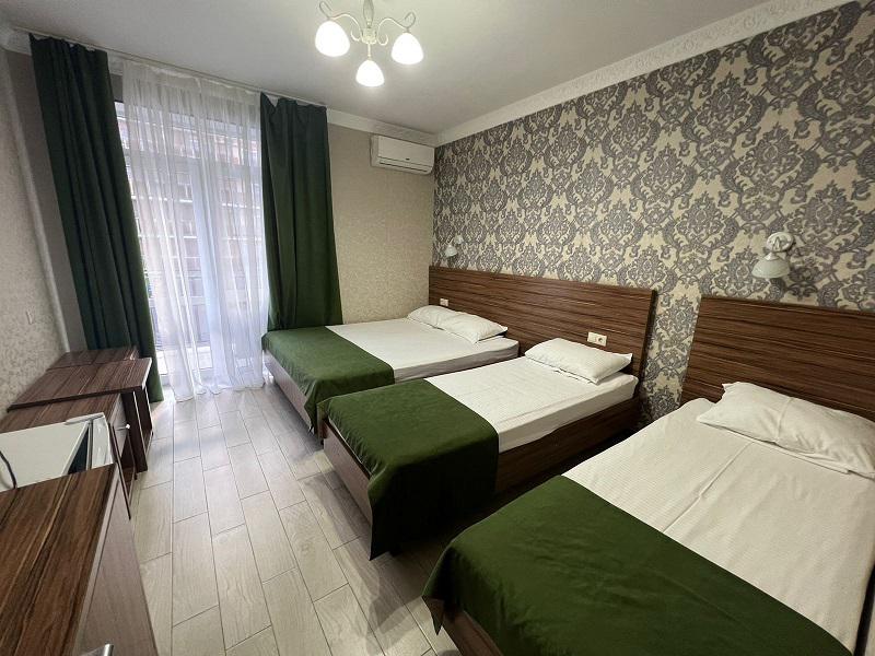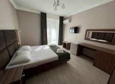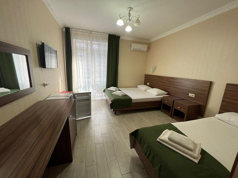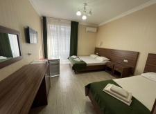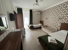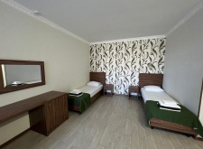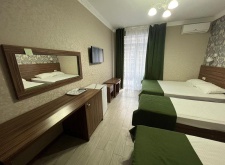 3-х местный стандартный номер - кровати, шкаф, тумбочки, телевизор, кондиционер, холодильник, санузел, душ. Есть возможность установки дополнительного места.