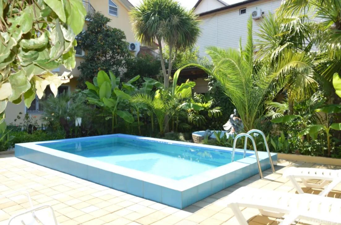 На территории гостевого дома два 3-х этажных корпуса, открытые плавательные бассейны для взрослых и детей, кухня-столовая для собственного приготовления. Дополнительно оплачивается курортный сбор. Согласно Федеральному закону от 12.07.2024 №176-ФЗ, с 2025 года вместо курортного сбора вводится туристический налог.
