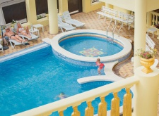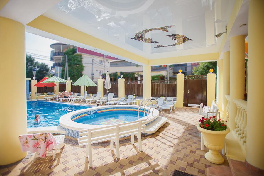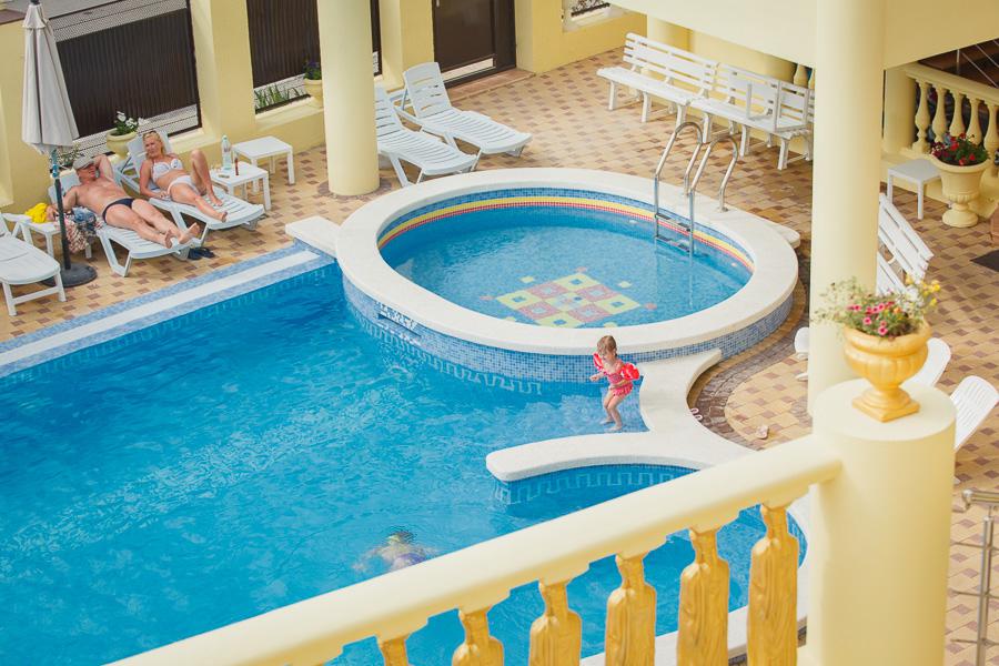 На территории гостиницы есть бассейн, сауна, детская площадка, кухня (самообслуживание) и т.д. По вечерам проводятся детские дискотеки. Для гостей, приезжающих на личном автотранспорте, предлагается платная охраняемая автостоянка, находящаяся в 20 метрах от гостиницы.