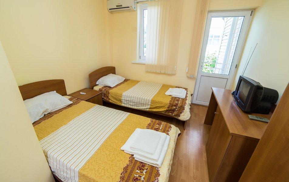 Небольшой гостевой дом занимает закрытую территорию. Гостей ожидают двухместные номера Стандарт и четырехместные Семейные, в которых имеются индивидуальный санузел, кондиционер, телевизор и холодильник.